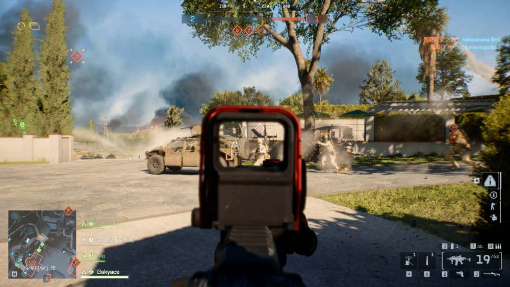 “東方林木”希望大家聽(tīng)到名字不要誤會(huì),并不是東方主題的地圖,而是加利福尼亞郊外豪宅區(qū)“Eastwood”。相比“布萊克韋爾農(nóng)場(chǎng)”,其更多的偏向中近距離戰(zhàn)斗居多。這個(gè)地圖的對(duì)抗核心是多個(gè)任務(wù)點(diǎn)集中的中間豪宅,周遭其他零散的任務(wù)點(diǎn)圍繞在四周的散戶,隨著升級(jí)逐漸聚焦在正中,從室外聚攏到室內(nèi),十分刺激。