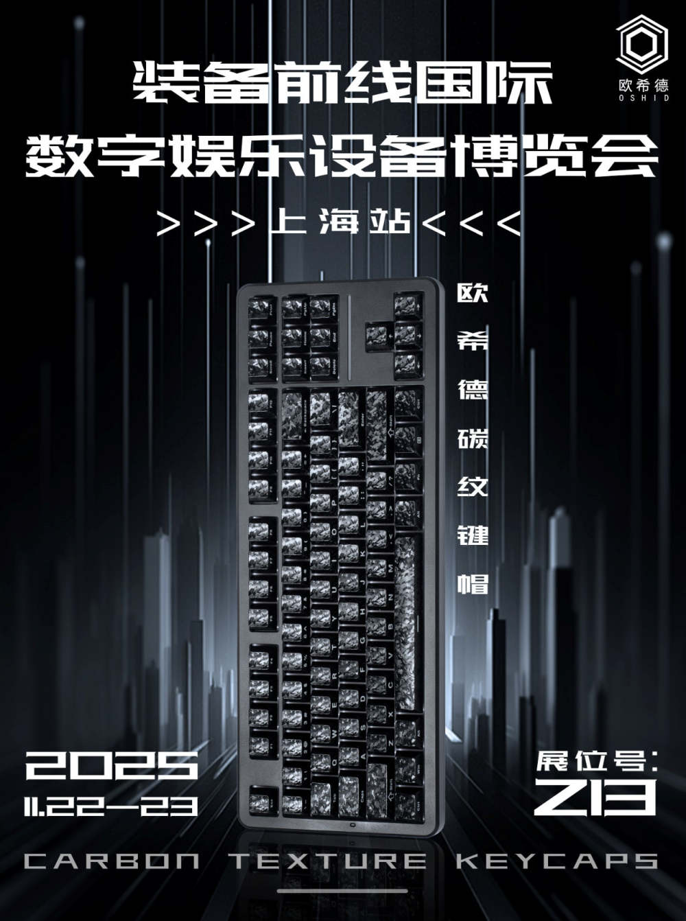 依托 200 項專利技術,歐希德碳紋鍵帽實力出圈!16道工序搭配高精度工藝,防滑防汗還耐看,辦公游戲雙適配,解鎖指尖高級體驗。